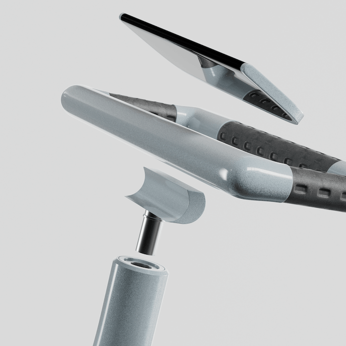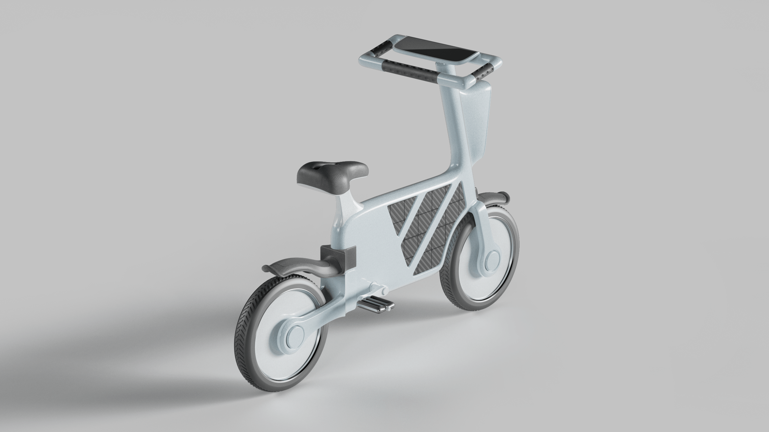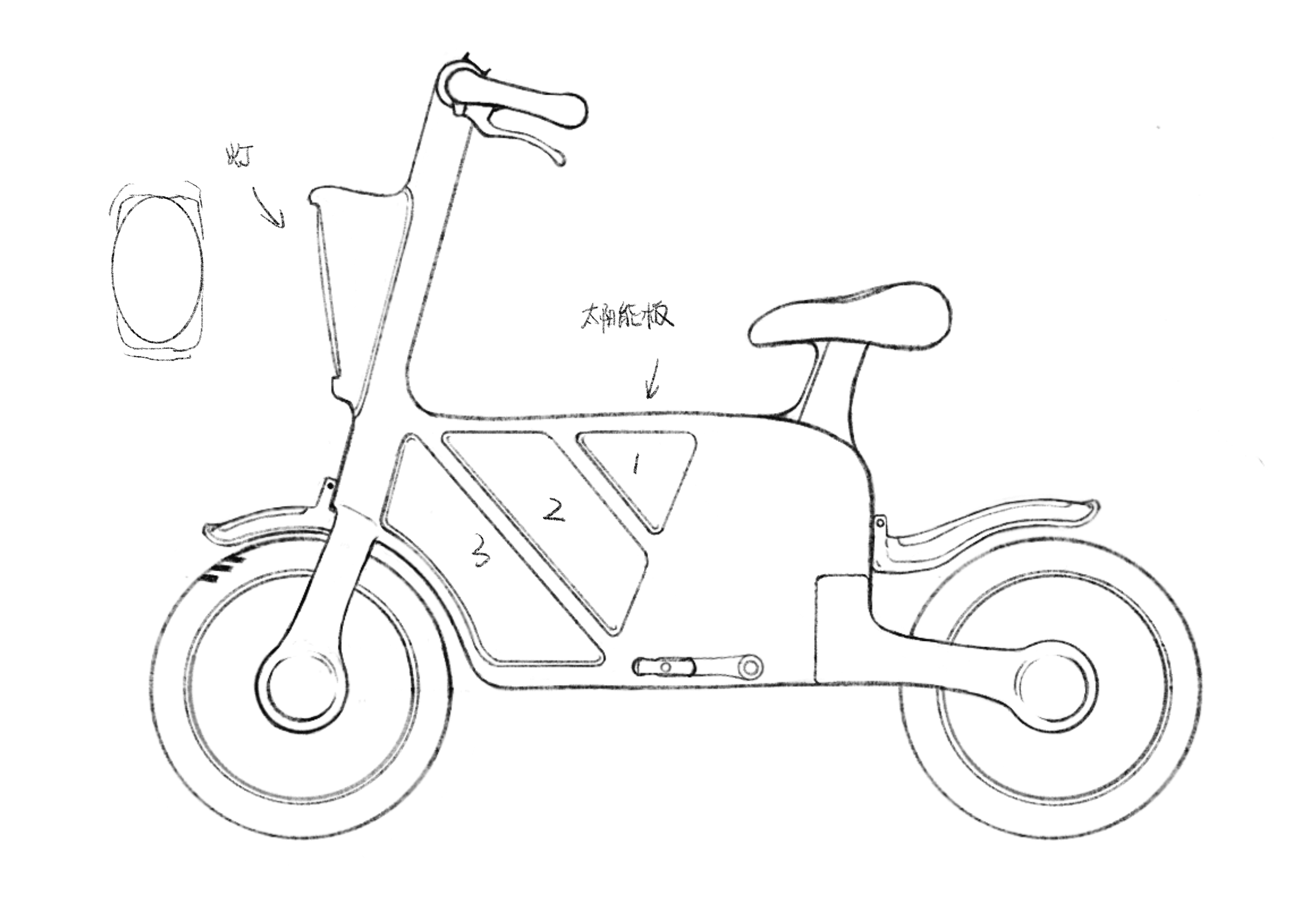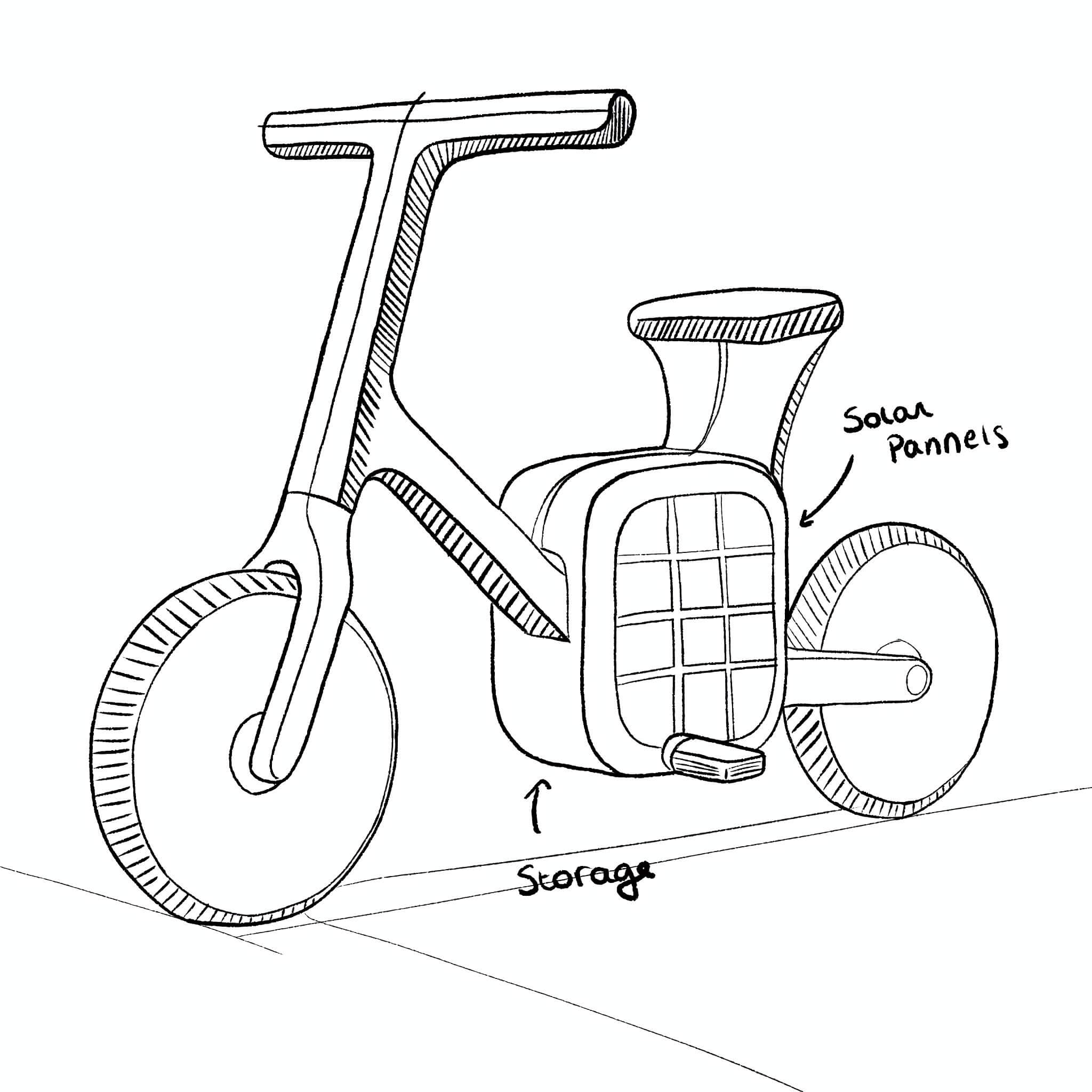 The proposal speculates on what urban mobility could look like in 2050 given trajectories in solar panel efficiency. A 1.0 m² surface operating at 30–35% efficiency would meet an e-bike's daily energy demand of approximately 400 Wh, making genuinely self-charging vehicles technically feasible at the timescale considered.