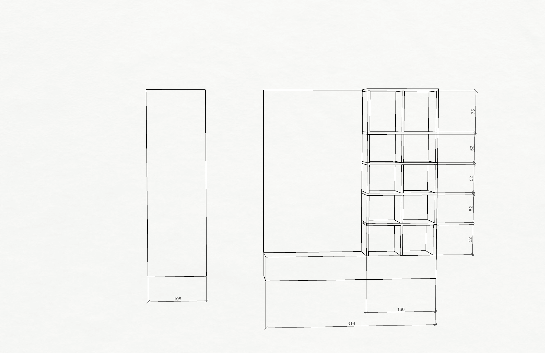 On the production side: assisting in the development of tailored furniture pieces — including a TV stand and shelf, a dining table, and a working table with drawers — from concept through to fabrication detail.