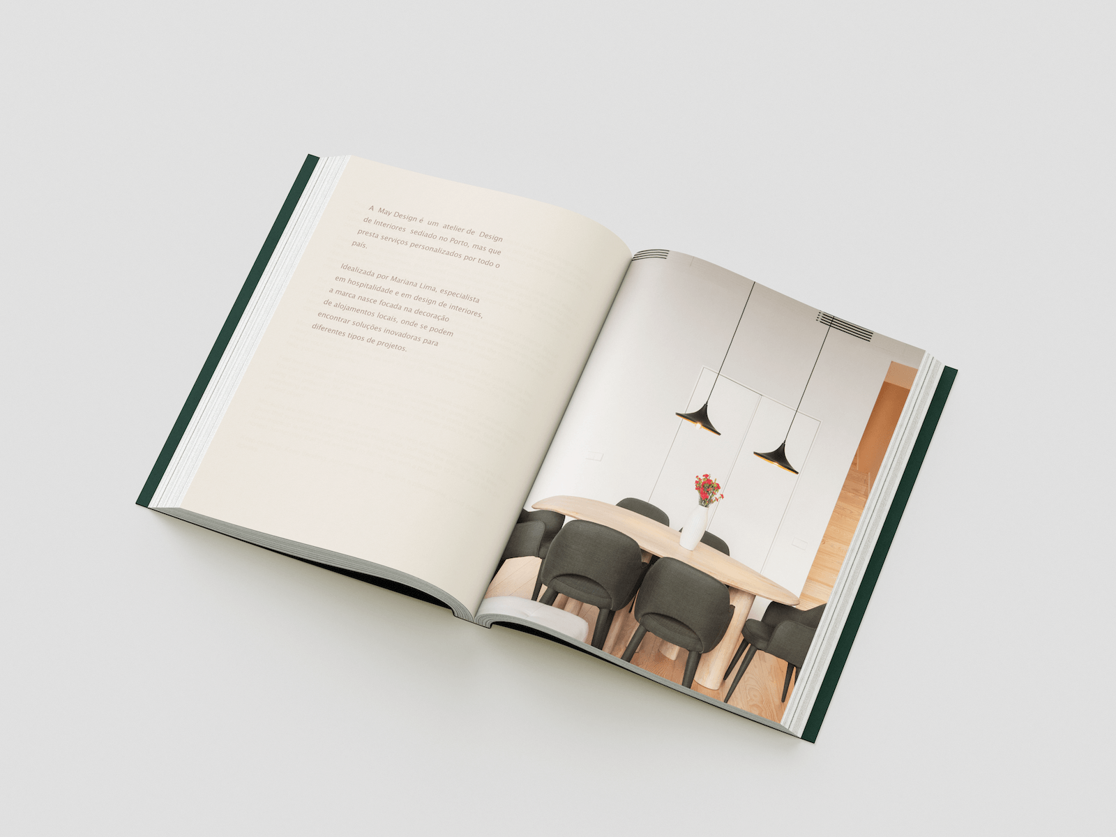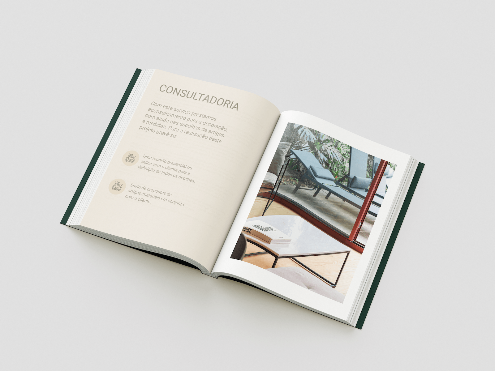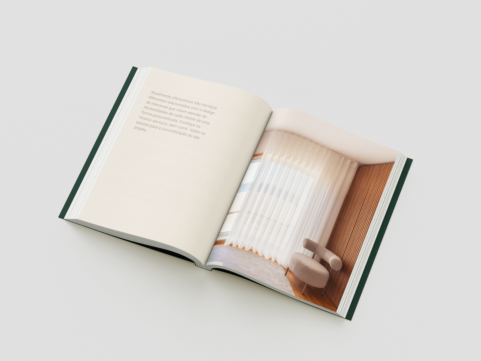 The work covered both ends of the studio. On the visual side: refining the brand's email signature and portfolio, and designing an interior decoration book.